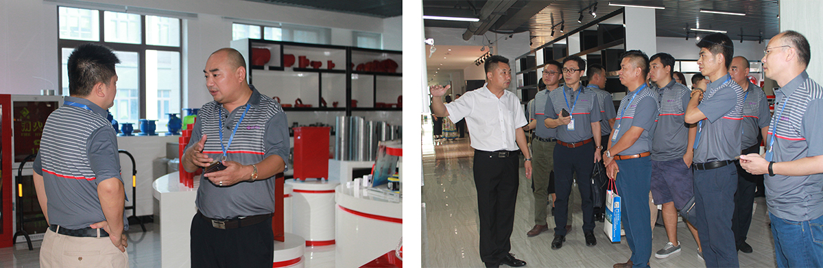 首先,由我司负责人郭伟强先生与设备部钟新洋先生带领建筑协会一行参观展厅,展示我司,并让大家对消防的中央控制系统,喷淋灭火系统、消火栓系统、正压送风系统、防排烟系统、感烟(温)报警系统、声光报警系统有了初步的认识。