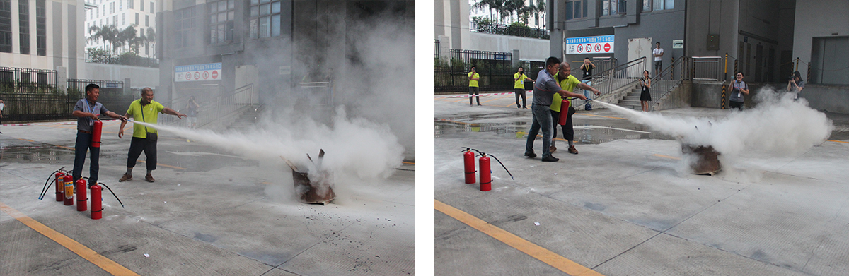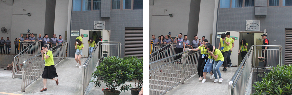 最后,建筑协会一行观摩和参与了我司组织的消防演习活动,此次消防演习主要讲解和展示了疏散逃生、伤员救治、灭火器的使用等。